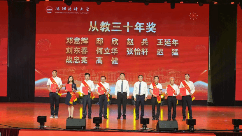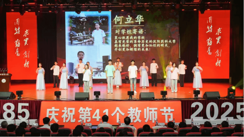 9月10日下午,沈阳药科大学在南校区大学生活动中心多功能厅举办第41个教师节庆祝大会暨2025年度老教师荣休、新教师入职宣誓仪式,隆重表彰教书育人先进典型、致敬荣休教师、迎接新入职教职工,营造尊师重教浓厚氛围。校党委书记高明宇,校党委副书记、牵头负责学校行政工作的副校长齐炼文,学校领导班子成员关雪峰、李可强、宋少江、路金才、卢文春、翟鑫出席大会,江苏康缘药业股份有限公司现代中药研究院副院长、辽宁北峰药业有限公司执行董事郭庆明,浙江医药股份有限公司人力资源部部长严文斌应邀出席大会。全体中层干部、师生代表600余人参加大会。大会由校党委副书记关雪峰主持。